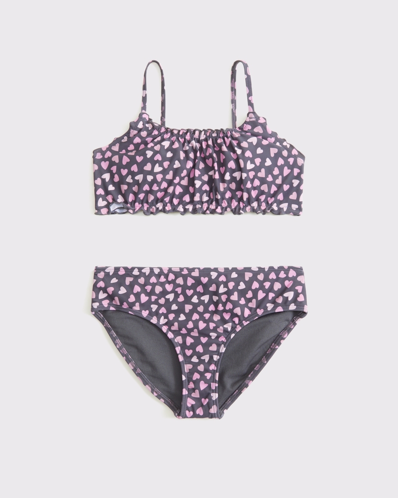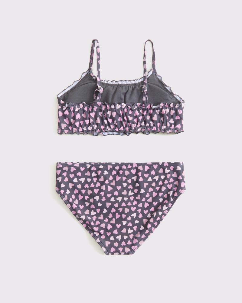 Comfortable two-piece swimsuit in a soft jersey fabric with 4-way stretch properties. Features a bikini-style top with lettuce edge detail, a scoop neckline, adjustable straps and full rear coverage. Imported.