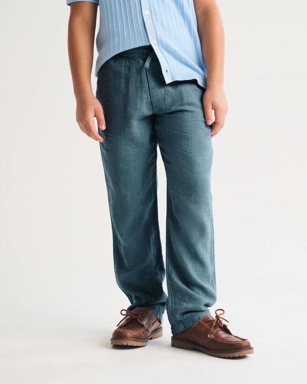 Comfortable pants in our soft linen fabric. Features a pull-on style elasticated waistband with adjustable drawcords and pockets. Imported.