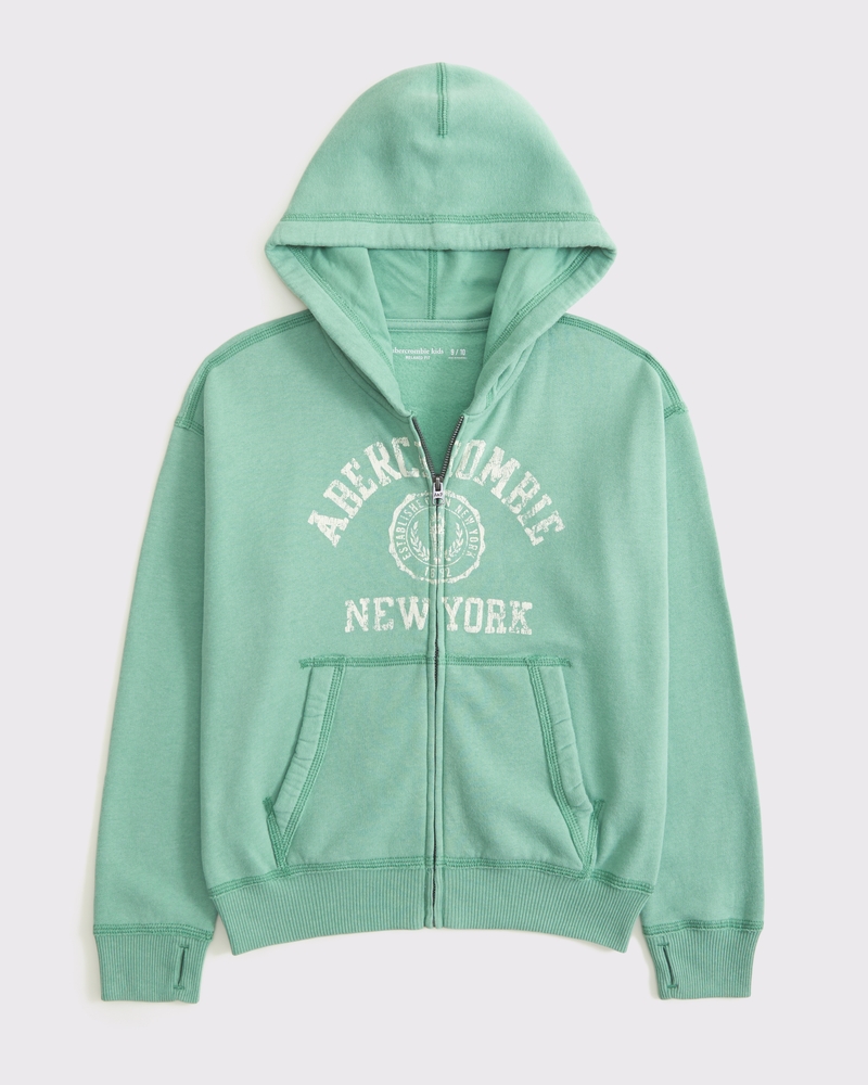 Comfy full-zip hoodie in a super soft fleece fabric, with logo detail at chest, side pockets, ribbed hem and thumbholes at cuffs. Imported.