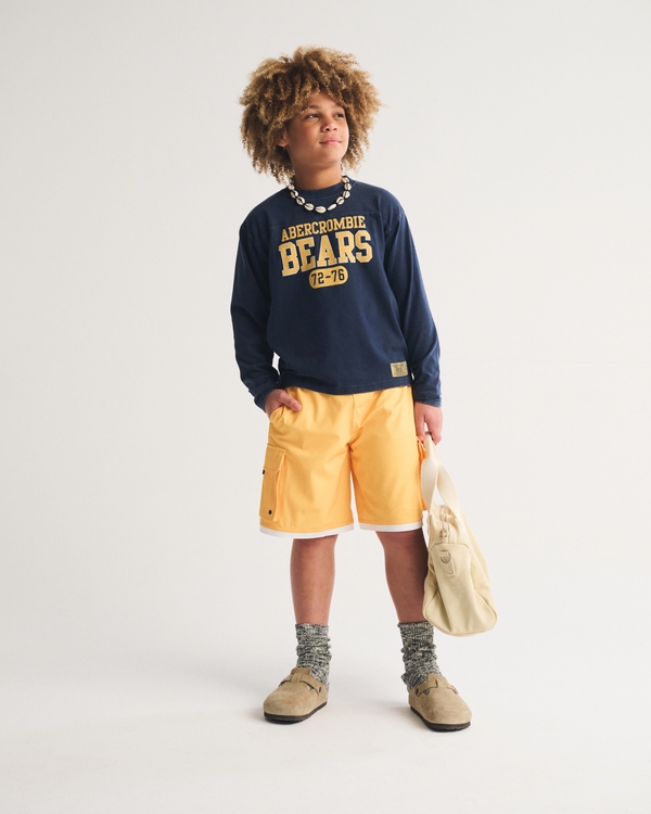 Comfortable long-sleeve tee in our soft cotton-blend fabric and relaxed-fit silhouette. Features vintage-inspired graphic logo detail at chest, small logo tag detail at hem and crew neckline. Imported.