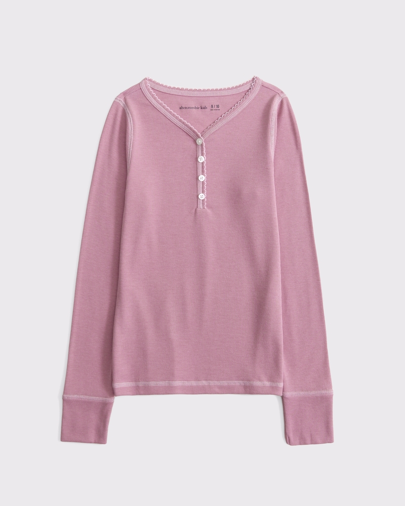 Slim-fitting long-sleeve henley tee in a soft rib fabric and medium length, that hits right at the hips, with all-over ribbed detail, button-up neckline and straight hem. Imported.