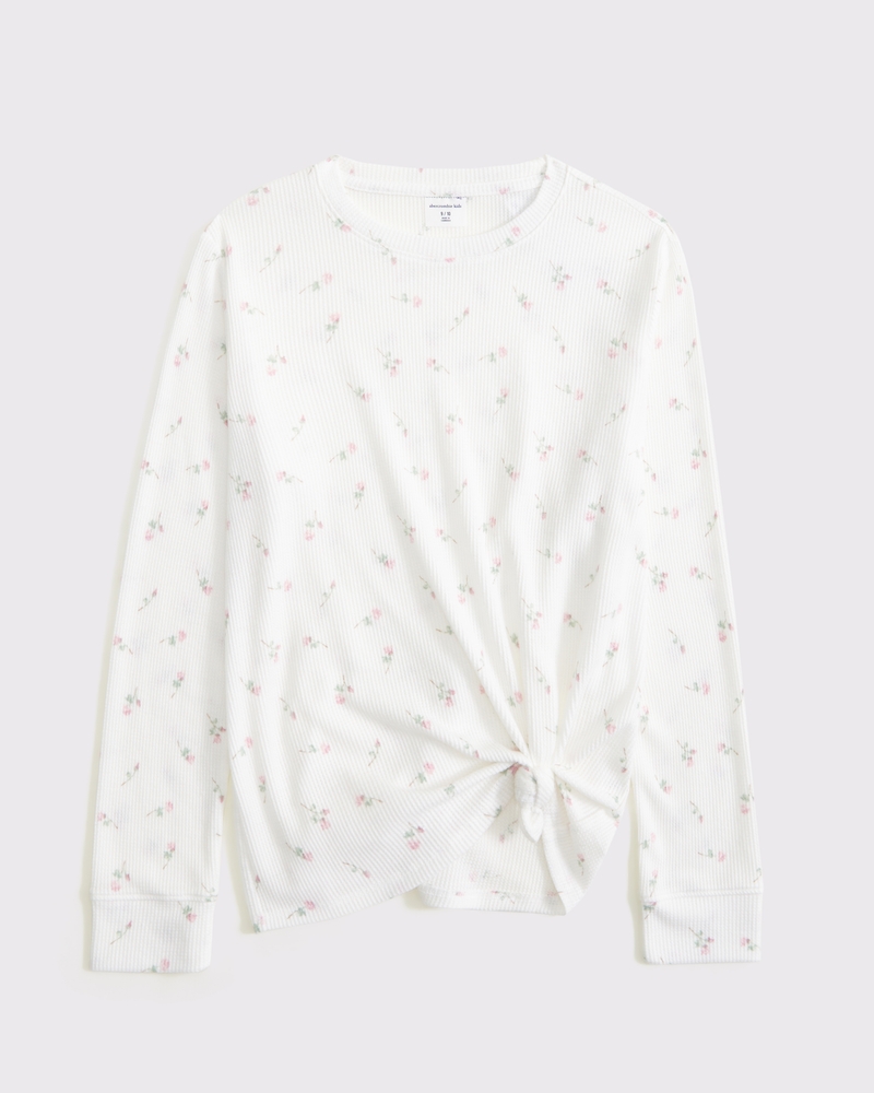 long-sleeve knot-front waffle tee