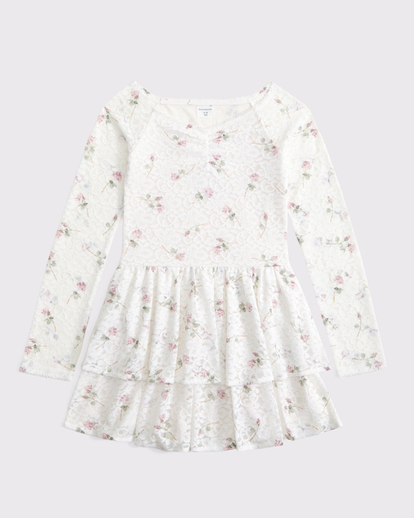 long-sleeve lace tiered mini dress