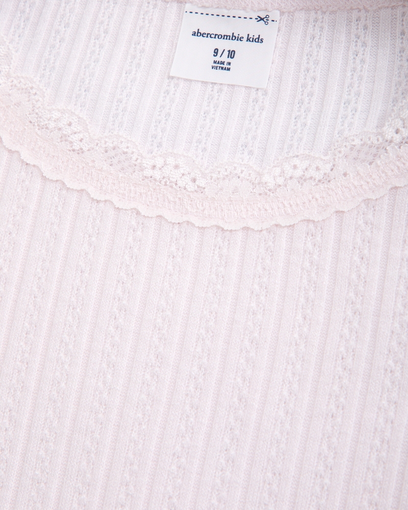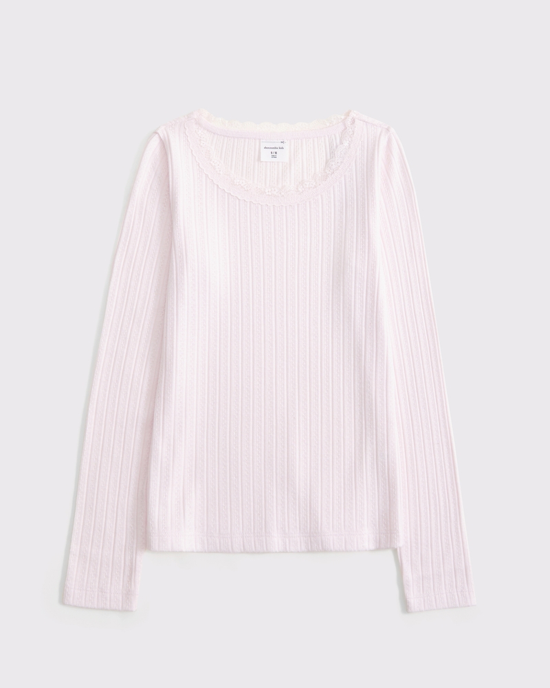 long-sleeve pointelle lace-trim top