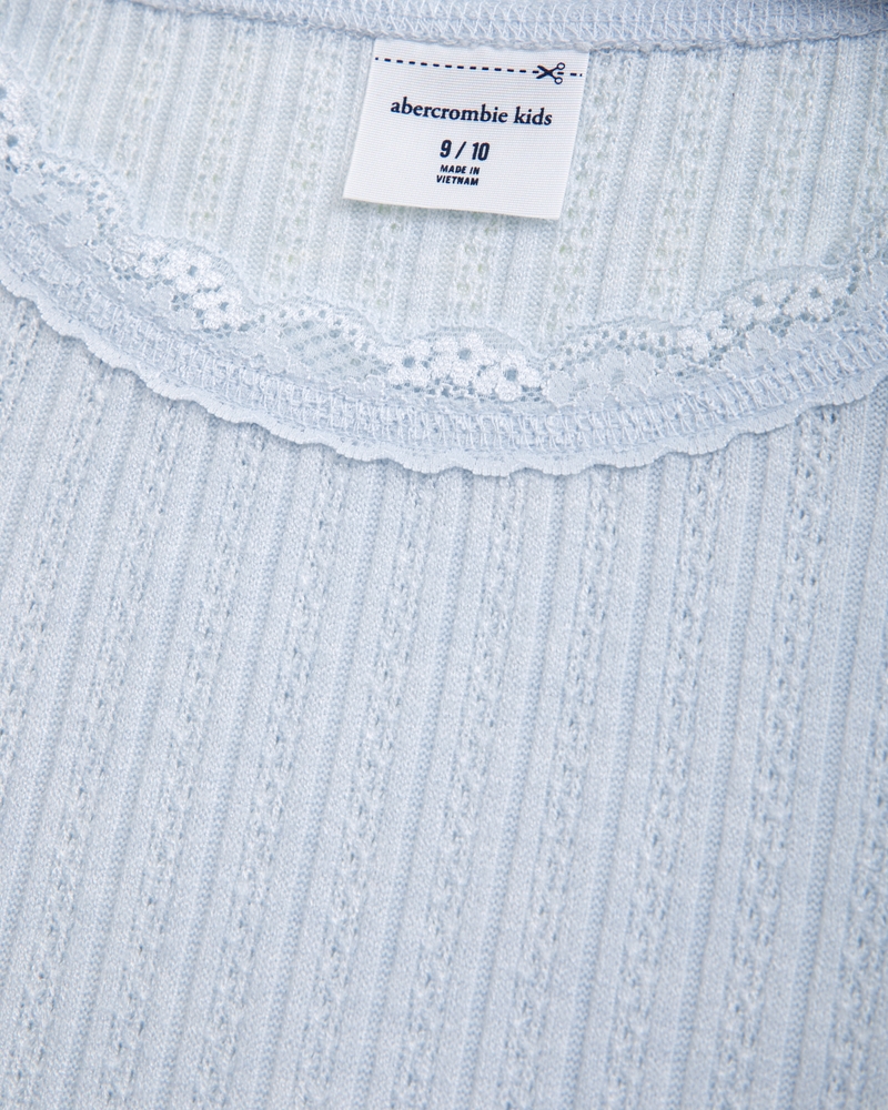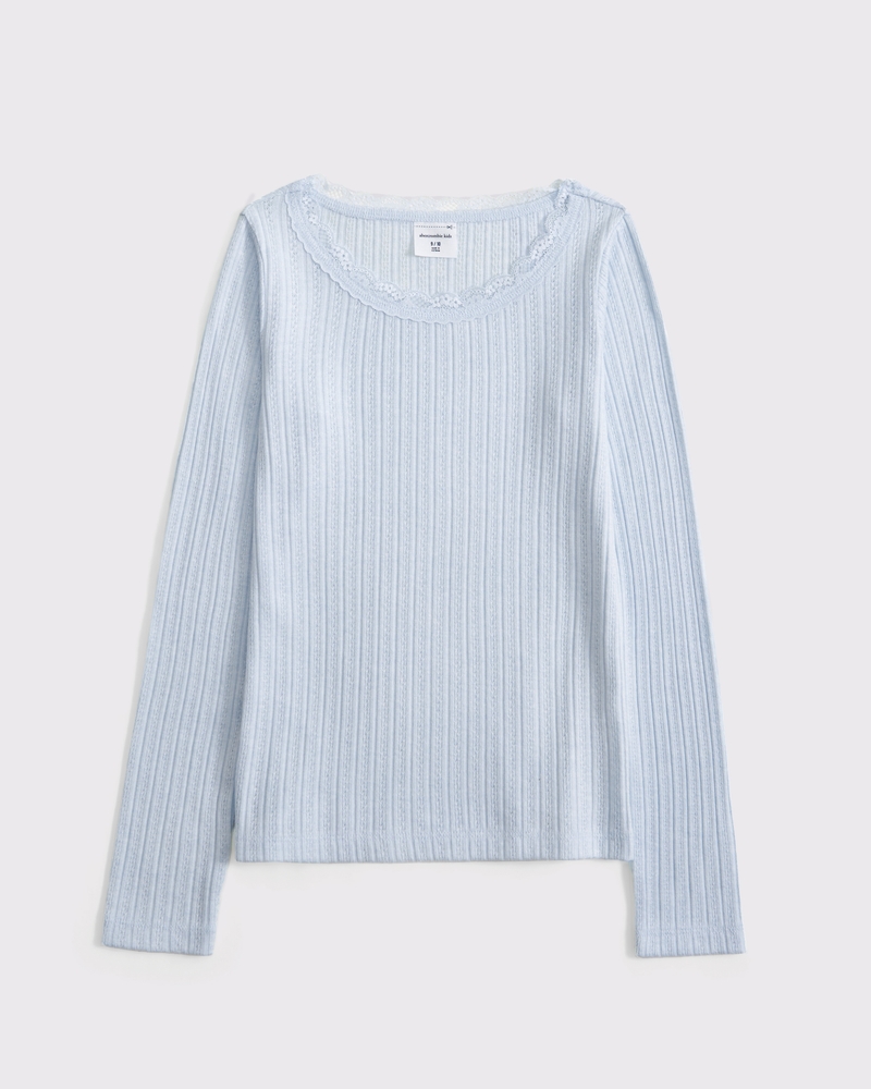 long-sleeve pointelle lace-trim top