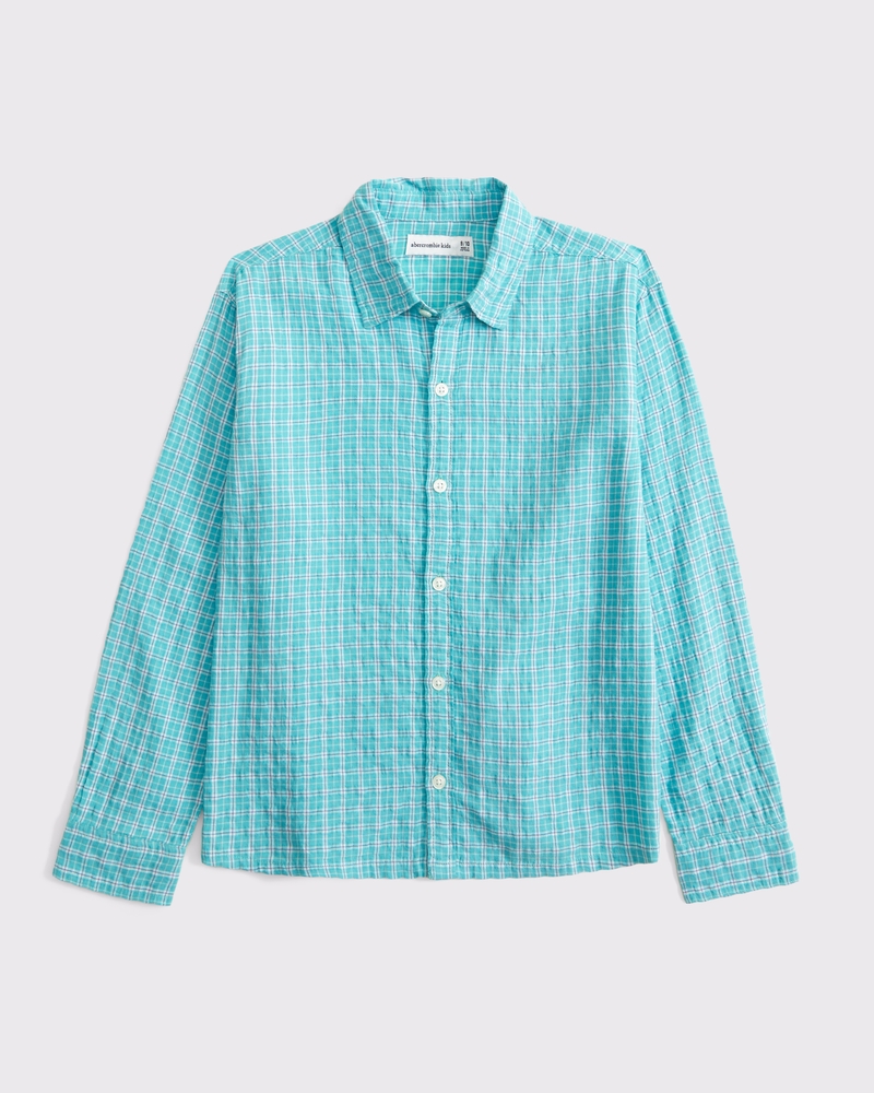 long-sleeve textured poplin shirt