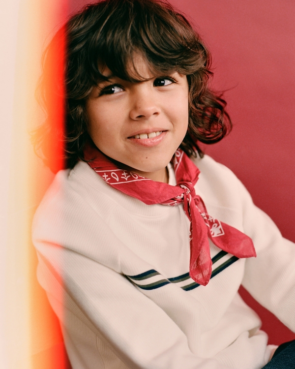Comfortable long-sleeve tee in a soft cotton fabric and relaxed-fit silhouette, with vintage-inspired striped detail at chest, all-over ribbed detail and crew neckline. Imported.
