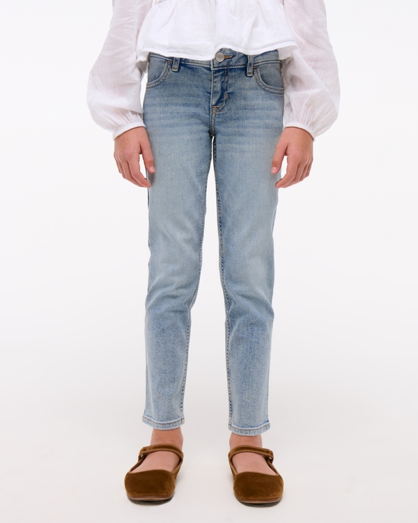 Our new low rise skinny jeans in a light wash, with Y2K-inspired details, functional pockets and waistband adjusters in all sizes. Imported.