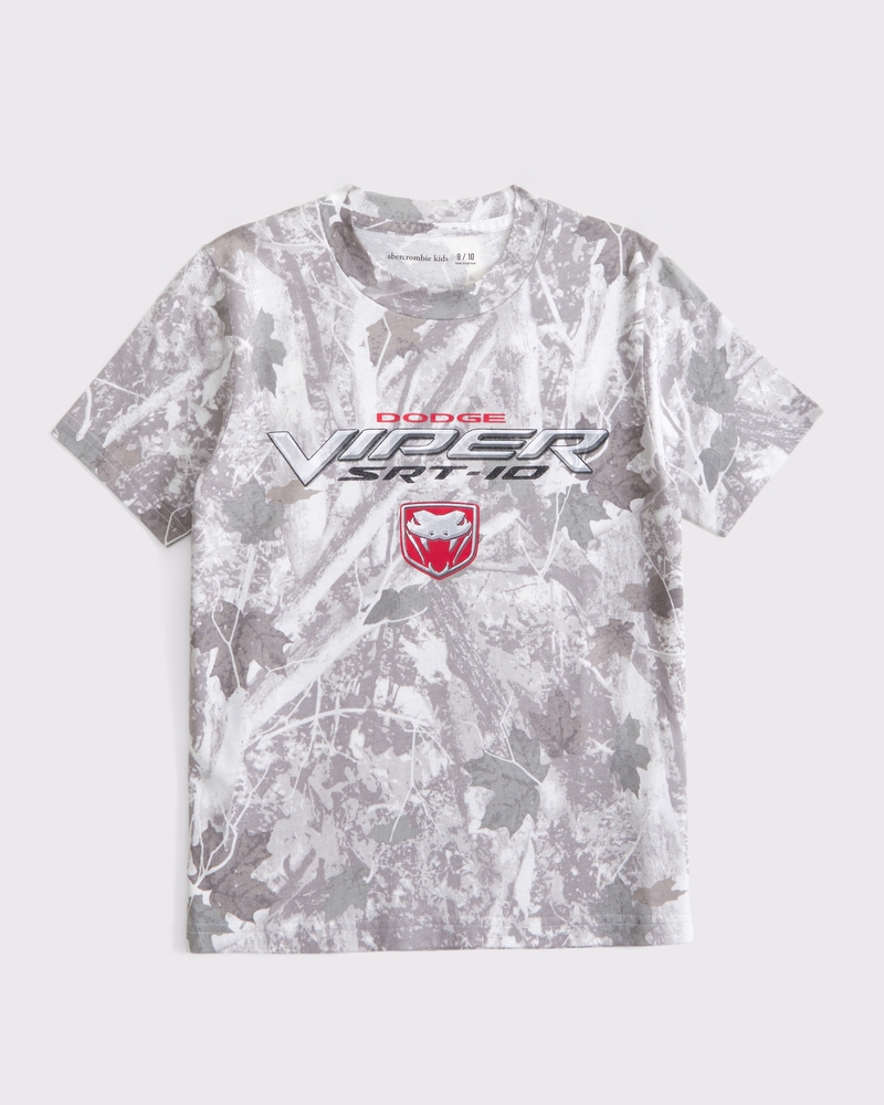 Comfortable short-sleeve tee in a soft cotton-blend fabric, with a camo print pattern, Dodge Viper graphic detail at chest and crew neckline. Imported.