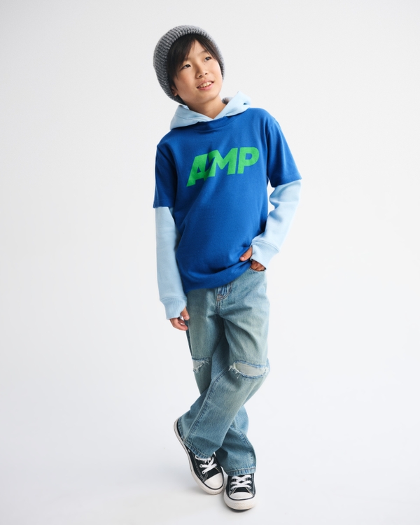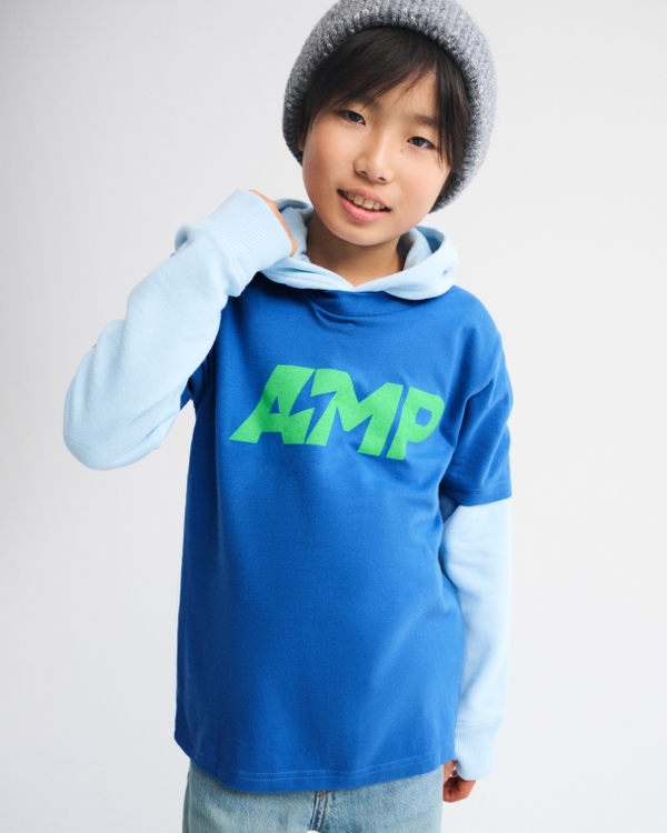 Comfortable short-sleeve tee in a soft cotton-blend fabric. Features AMP graphic details at chest and back and a crew neckline. Imported.