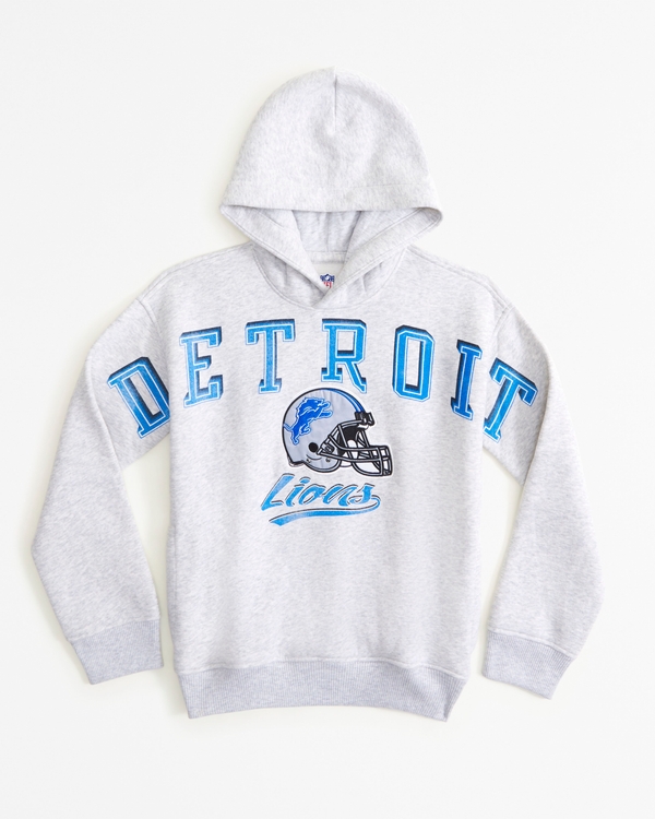 Comfy popover hoodie in our soft fleece fabric, featuring Detroit Lions-inspired graphic detail at chest and sleeves, side pockets, ribbed hem and thumbholes at cuffs. Imported.