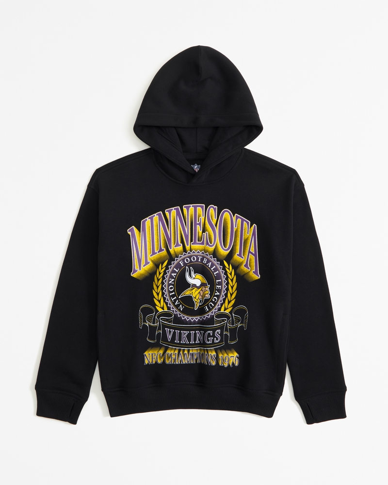 Comfy popover hoodie in our soft fleece fabric, featuring Minnesota Vikings-inspired graphic detail at chest, side pockets, ribbed hem and thumbholes at cuffs. Imported.