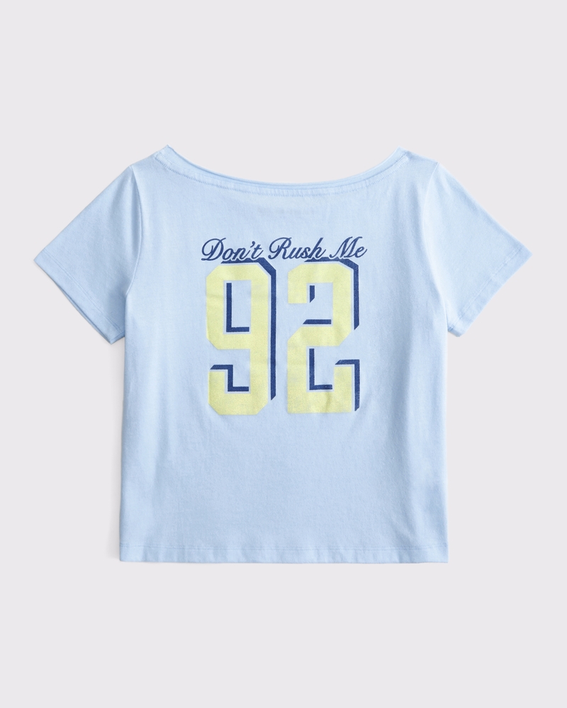 Easy-fitting short-sleeve tee in our soft cotton-blend fabric and short length, that covers the waistband and hits slightly above the hips, with graphic detail at chest, off-the-shoulder detail and straight hem. Imported.