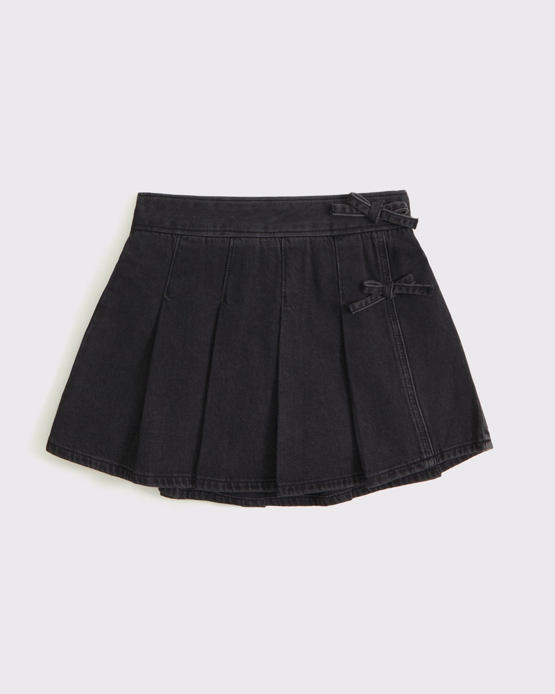 pleated wrap denim mini skort