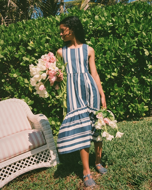 Versatile maxi dress in a soft poplin fabric, featuring on-trend tiering details and a high neckline. Imported.