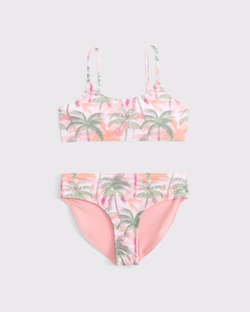 Comfortable reversible two-piece swimsuit in a soft jersey fabric with 4-way stretch properties. Features a bikini-style top with a scoop neckline and full rear coverage. This swimsuit is fully reversible with a patterned and solid sides. Imported.