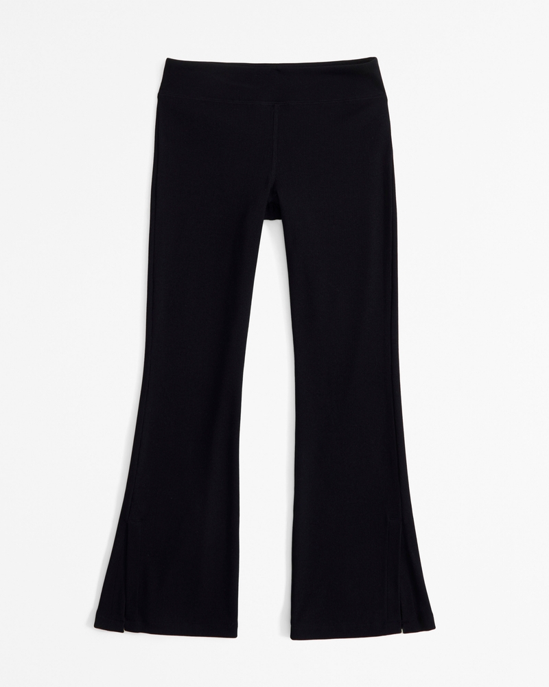 High rise flare leggings in our comfy rib fabric, featuring a split hem detail and elasticated waistband for maximum comfort. Imported.