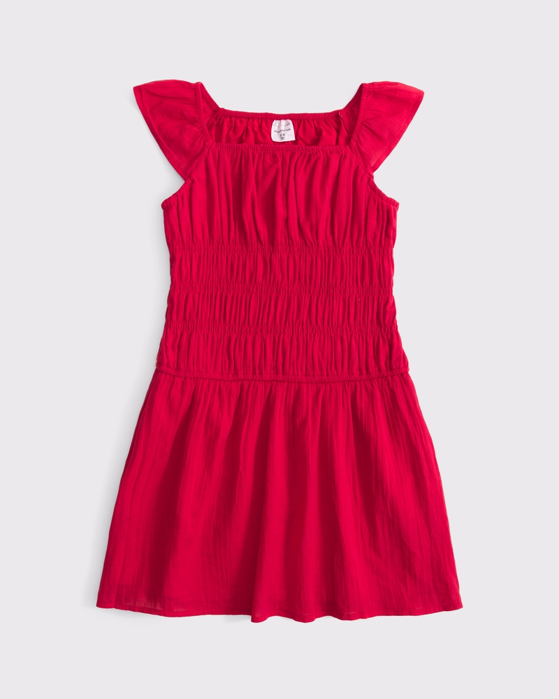 Versatile mini dress in a soft cotton fabric, with ruching details along the bodice and a smocked waist. Imported.