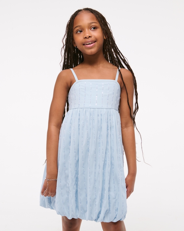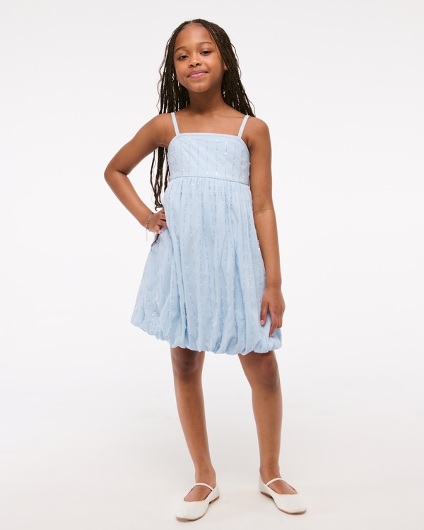 Versatile mini dress in a soft fabric, featuring all-over sequin and beaded details and on-trend bubble hem. Imported.