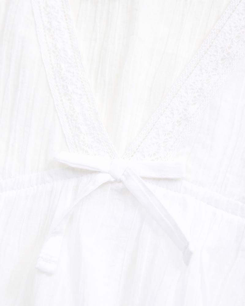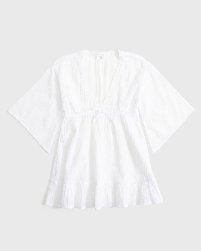Our easy-fitting short-sleeve kaftan swim coverup in a soft cotton fabric. Features a flowy silhouette and lace-trim details along the V-neckline. Perfect to throw on over a swimsuit on hot summer days. Imported.