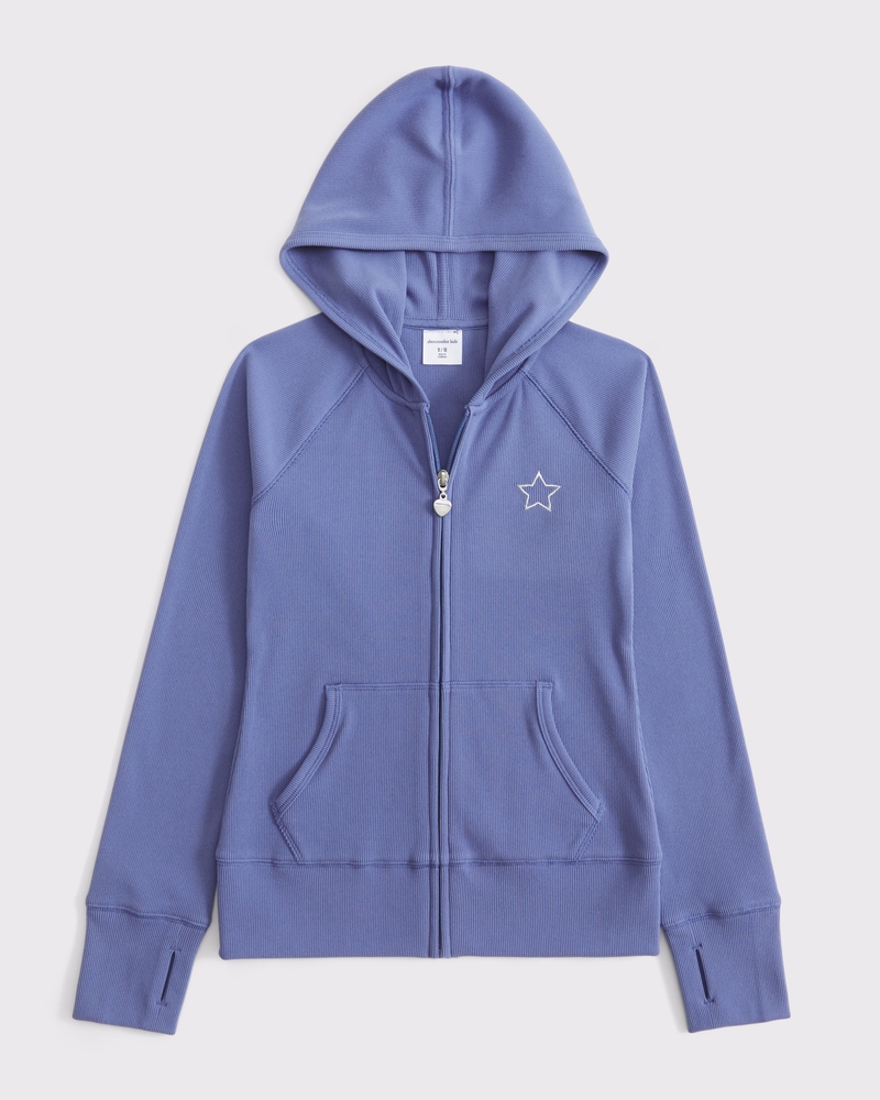 Slim-fitting full-zip hoodie in our super soft fabric, with embroidered graphic detail at left chest, zip-up front, side pockets, banded hem and thumbholes at cuffs. Imported.