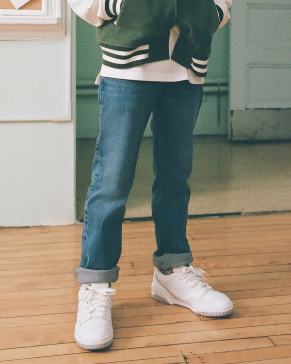 Easy-fitting jeans in a straight fit and our ultimate stretch fabric, styled with 5-pocket construction and waistband adjusters in all sizes. Medium wash. Sizes 5/6 and 7/8 have snap-front closures and sizes 9/10 and up have button-front closure. Imported.