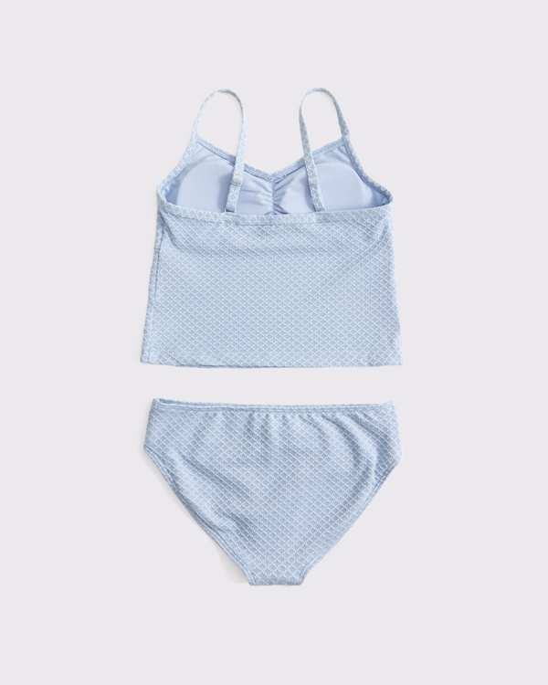 Our new two-piece tankini swimsuit in a textured diamond jacquard fabric with 4-way stretch properties. Features a tank with adjustable straps and matching bottoms with full rear coverage. Imported.