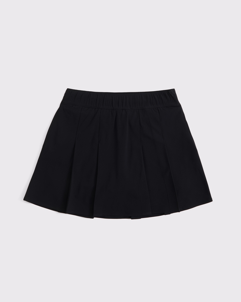 High rise mini skort in a soft traveler knit fabric, with on-trend pleating details, built-in shorts and a pull-on style elasticated waistband for maximum comfort. Imported.