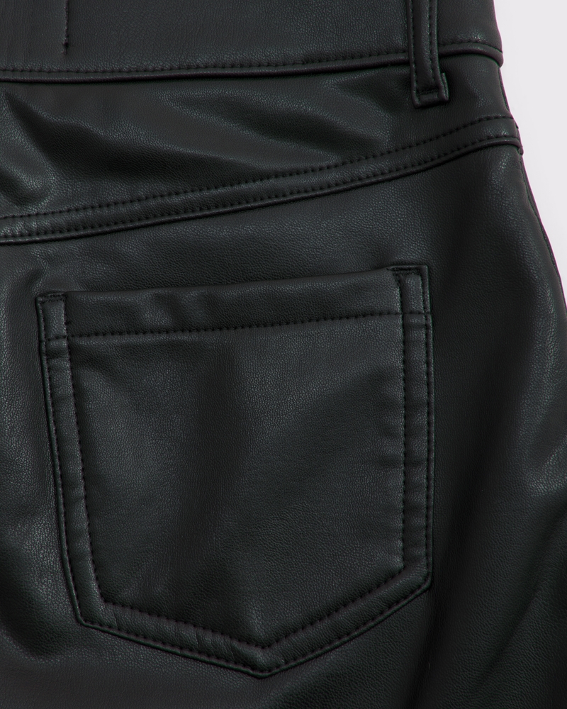 Our new easy high rise mini skort in a soft vegan leather fabric, with belt loops, pockets and built-in shorts for maximum comfort and style. Imported.
