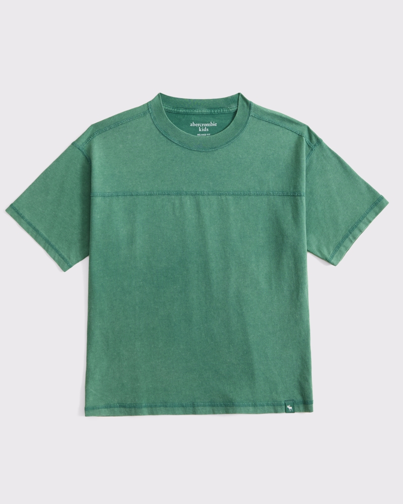 Classic short-sleeve tee in a soft cotton fabric, featuring all over wash effect, yoke detail across the chest, small icon tag detail at hem and crew neckline. Imported.