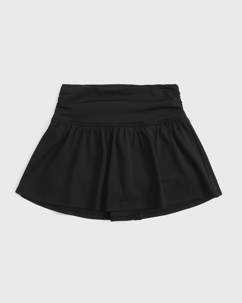 Our new high rise active skort in our soft synthetic fabric, featuring built-in shorts and cinching detail along the elasticated waistband for maximum comfort. Imported.