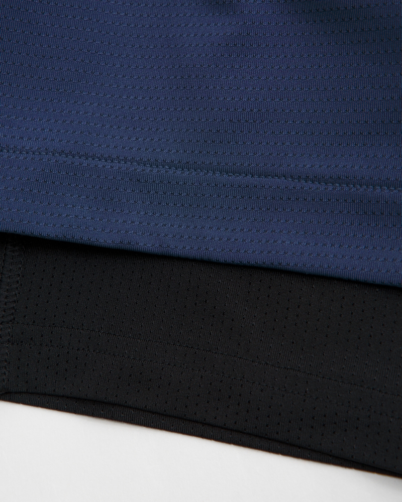 Our above-the-knee length twofer shorts in our active knit fabric. Features an elasticated waistband with logo drawcords, interior liner and pockets. Imported.