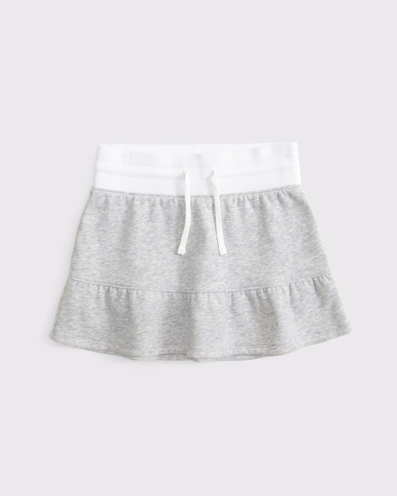 Our comfy mini skort in our soft fleece fabric. Features a ruffle hem, an adjustable drawstring waistband, built-in interior shorts and graphic details. This style does not have pockets. Imported.