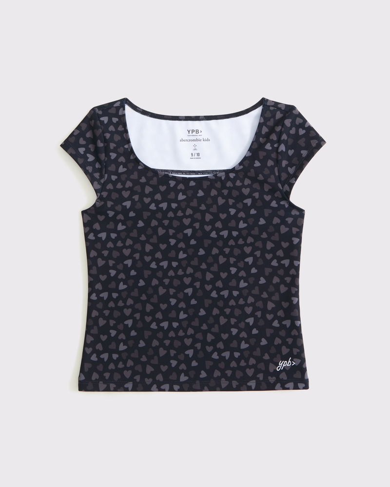 Comfortable short-sleeve set top in our soft active fabric, featuring embroidered logo detail at hem and scoop neckline. Imported.