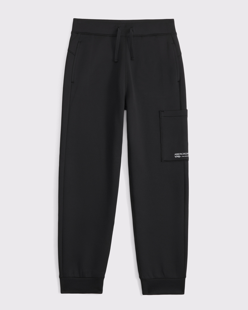 Our comfy joggers in our new textural active fabric, with 4-way stretch, breathability and moisture-wicking properties. Features print YPB graphic logo detail at utility-style pocket, elasticated drawstring waist, pockets and banded cuffs. Imported.