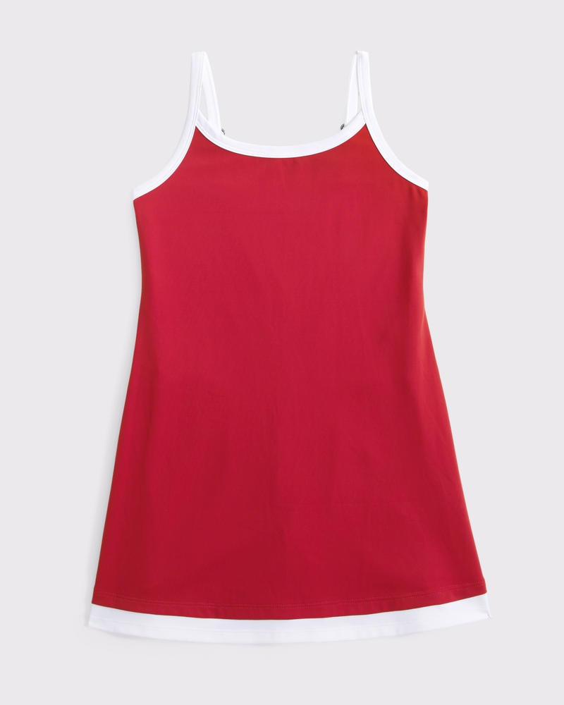 Versatile mini dress in our active fabric, featuring on-trend twofer neckline and hem and cami straps. Imported.