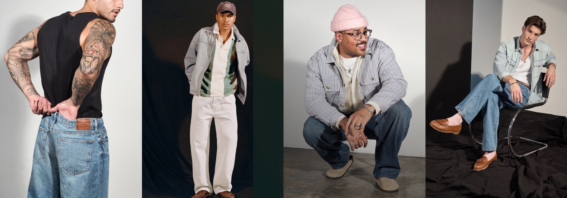 At Abercrombie & Fitch, our denim is made your way. Our team of denim-obsessed designers worked with you, the real experts, to create the perfect fit. Each style of jeans is thoughtfully designed with just the right amount of stretch to subtle inseam adjustments. From our roomy fit through the thigh and tapered toward the ankle men's athletic skinny jean to a classic straight leg jean, you can find your fit in a variety of washes. To ensure the most comfortable fit, our jeans come in sizes 26 to 38.