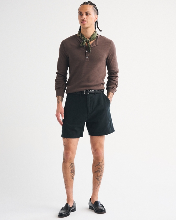 Versatile 6 inch (15 cm) plainfront shorts in our lightweight and comfortable 100% cotton fabric. Features a soft elastic comfort stretch waistband with beltloops, pockets throughout and button and fly closure. Imported.
