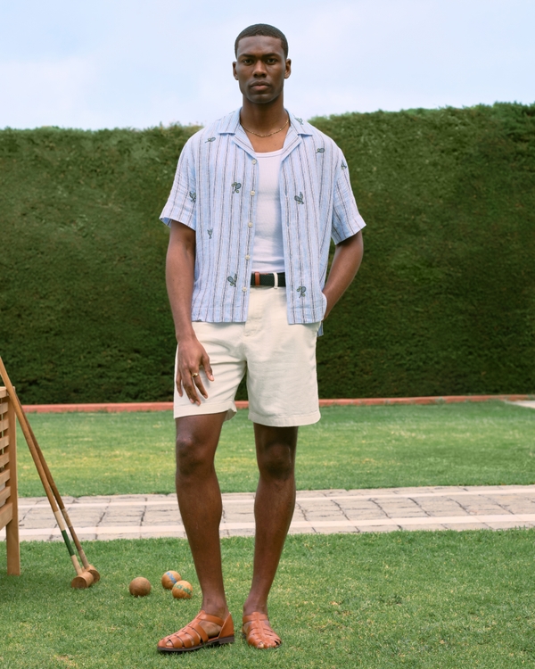 Classic 8 inch (20 cm) plainfront shorts in our 100% cotton fabric. Features a soft elastic comfort stretch waistband, pockets throughout and button and fly closure. Imported.
