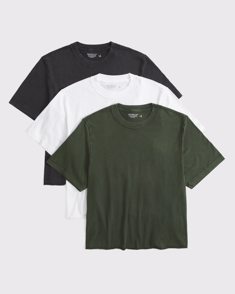 3-pack of our short-sleeve tee in our softAF 180g fabric and vintage oversized-fit silhouette, featuring a new cropped length, reverse seaming details, crew neckline and raw-hem detail. Made in the same fabric as our Essential Tee but fits like our Premium Heavyweight Tee. Imported.