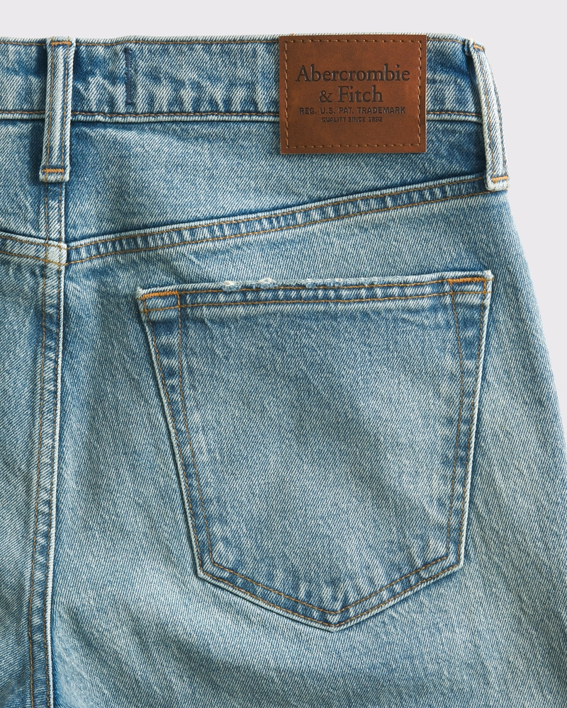 Our 90's Straight jeans that are straight through the thigh and leg with a slightly higher rise, made in our vintage stretch fabric and broken-in denim feel. Features a medium wash and clean hem. Imported.