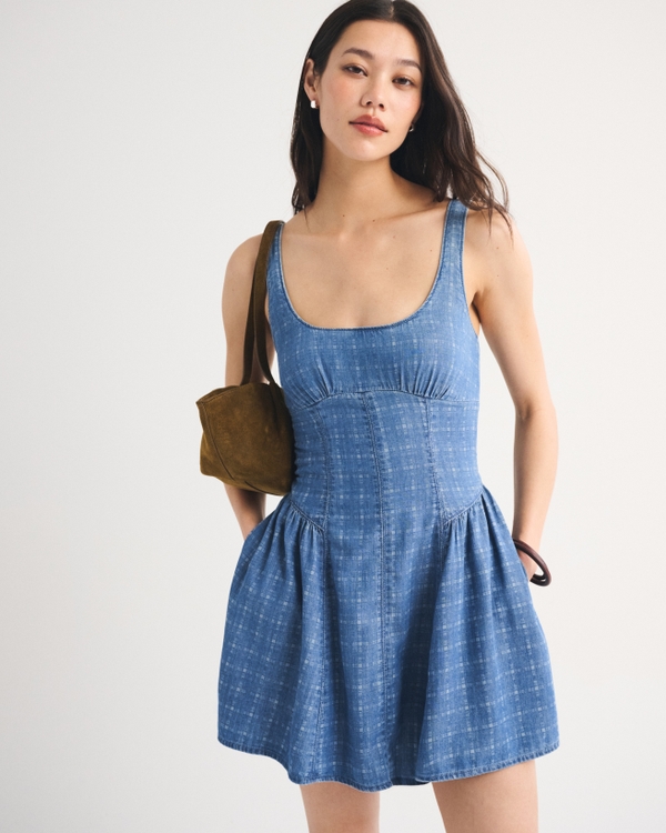 Our new collection built to make going bra-free that much smoother. This flattering mini dress is in our soft chambray fabric. Features a scoop neckline with subtle picot-trim detail, back smocking, adjustable straps, a dipped waistline with a flowy skirt and a seamed-in bra with removable pads to go bra-free. Imported.