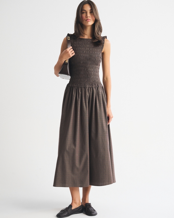 A&F Sydney Smocked Drop-Waist Ruffle Midi Dress