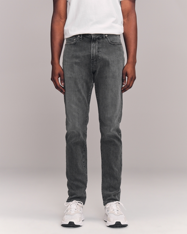 Our athletic skinny jeans in our signature stretch fabric and a relaxed-fit silhouette, that's skinny through the leg, with extra room through the hip and thigh and tapered toward the ankle with refined details for a more athletic build. Features a grey wash and frayed hem. Imported.