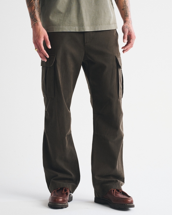 Our cleaned up cargo-style pants in a soft cotton-blend fabric and baggy-fit silhouette. Features cargo-style pockets, knee seaming details and button fly closure. Imported.