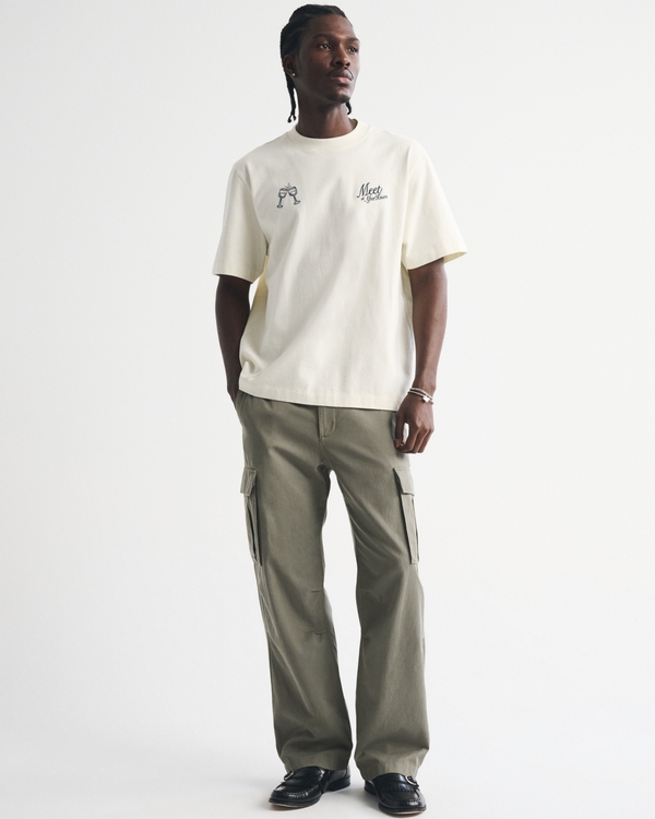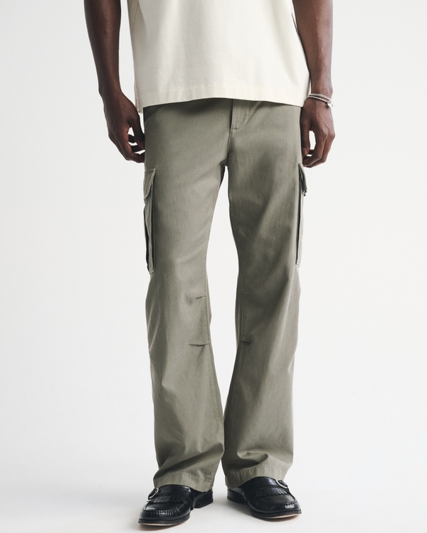 Our cleaned up cargo-style pants in a soft cotton-blend fabric and baggy-fit silhouette. Features cargo-style pockets, knee seaming details and button fly closure. Imported.