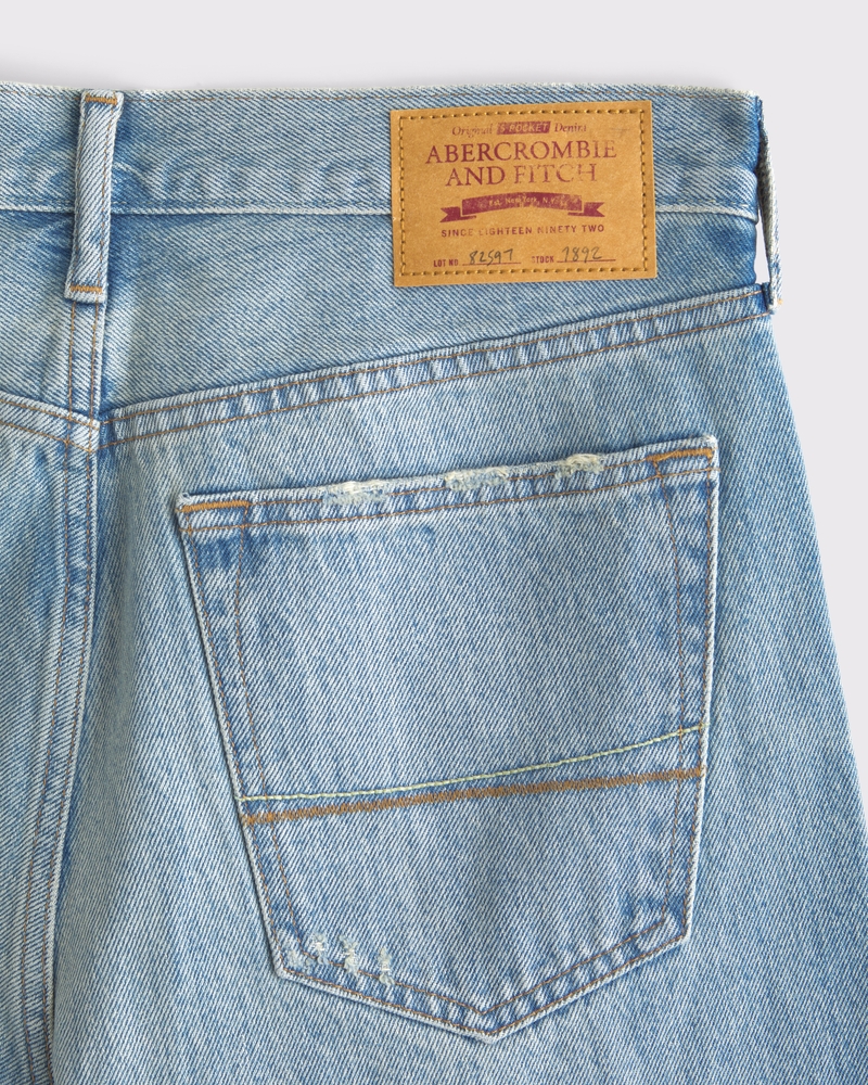 Our baggy jeans that are relaxed and baggy-fitting through the leg with slight puddle at the shoe, in our 100% cotton no-stretch fabric and broken-in denim feel. Features a medium wash, patchwork and distressed details and a clean hem. Our baggy fit has a longer inseam designed to puddle around the shoe. For a shorter visual, choose a shorter inseam. Imported.