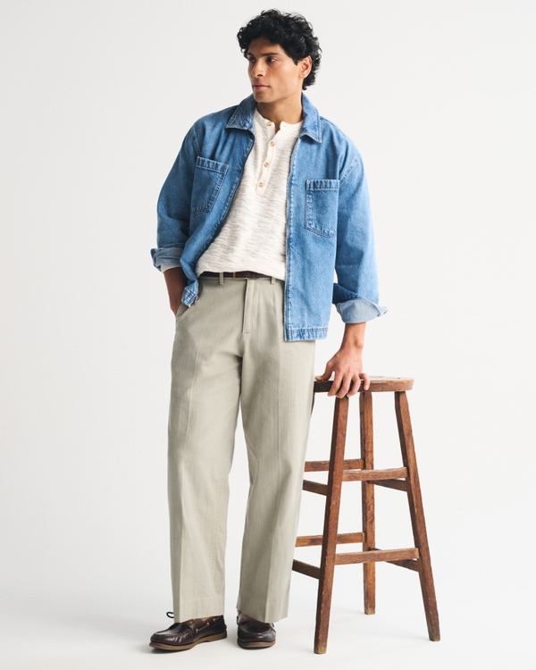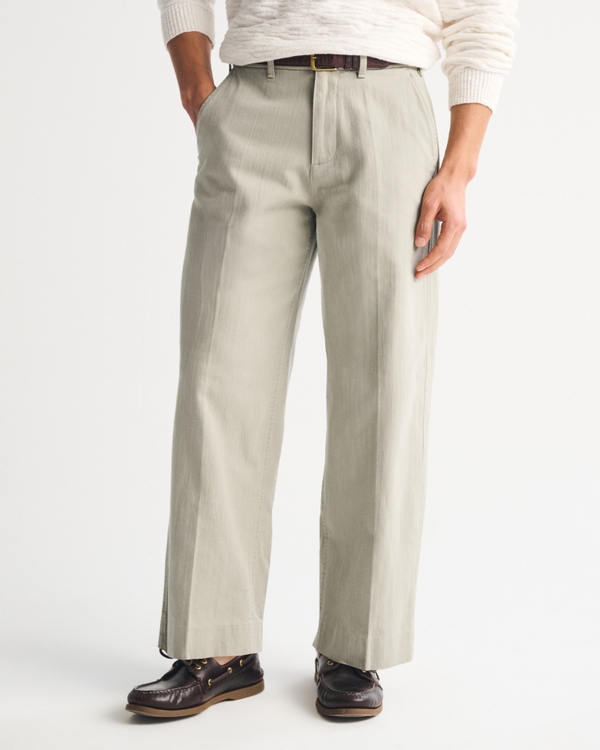 Our classic pant in a cleaned up silhouette and soft textural cotton fabric. Fits wide through the leg and sits higher at the ankle. Features a shorter inseam designed to hit at the ankle and give a cleaner visual. For a standard visual, choose a longer inseam. Imported.