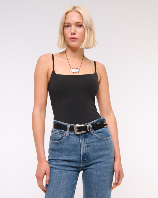 Our new collection built to make going bra-free that much smoother. Slim-fitting 90's-style bodysuit in our softAF cotton-blend seamless fabric, featuring removable pads for added coverage, square neckline and two-snap bottom closure. Our cotton-blend seamless fabric is an ultra soft, brushed jersey fabric, that gives you a casual seamless look! Imported.