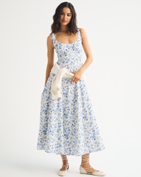 Our new collection built to make going bra-free that much smoother. This flattering midi dress is in our classic poplin fabric. Features a scoop neckline with subtle picot-trim detail, back smocking, adjustable straps, a dipped waistline with a flowy skirt and a seamed-in bra with removable pads to go bra-free. Imported.